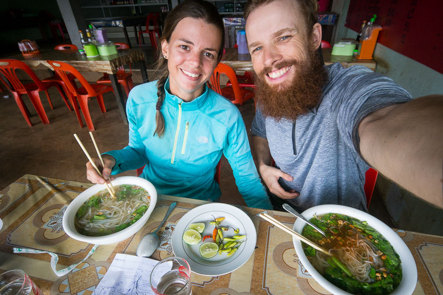 Our last stop was in the city of Thakehk. There is not that much to see there and we decided to be lazy and chill in our hotel room for the day and that felt like a real treat. Leaving Thakehk in direction of East meant leaving the Mekong but entering a really beautiful area surrounded by hills, cliffs and mountains. It was a great place to enjoy both the natural beauty of the country, as well as the happy and friendly people that we passed. Everybody smiled and waved at us as we passed by, making the cycling even more enjoyable. At last we climbed one hill to reach the border of Vietnam, getting us closer to our current destination of Hanoi.